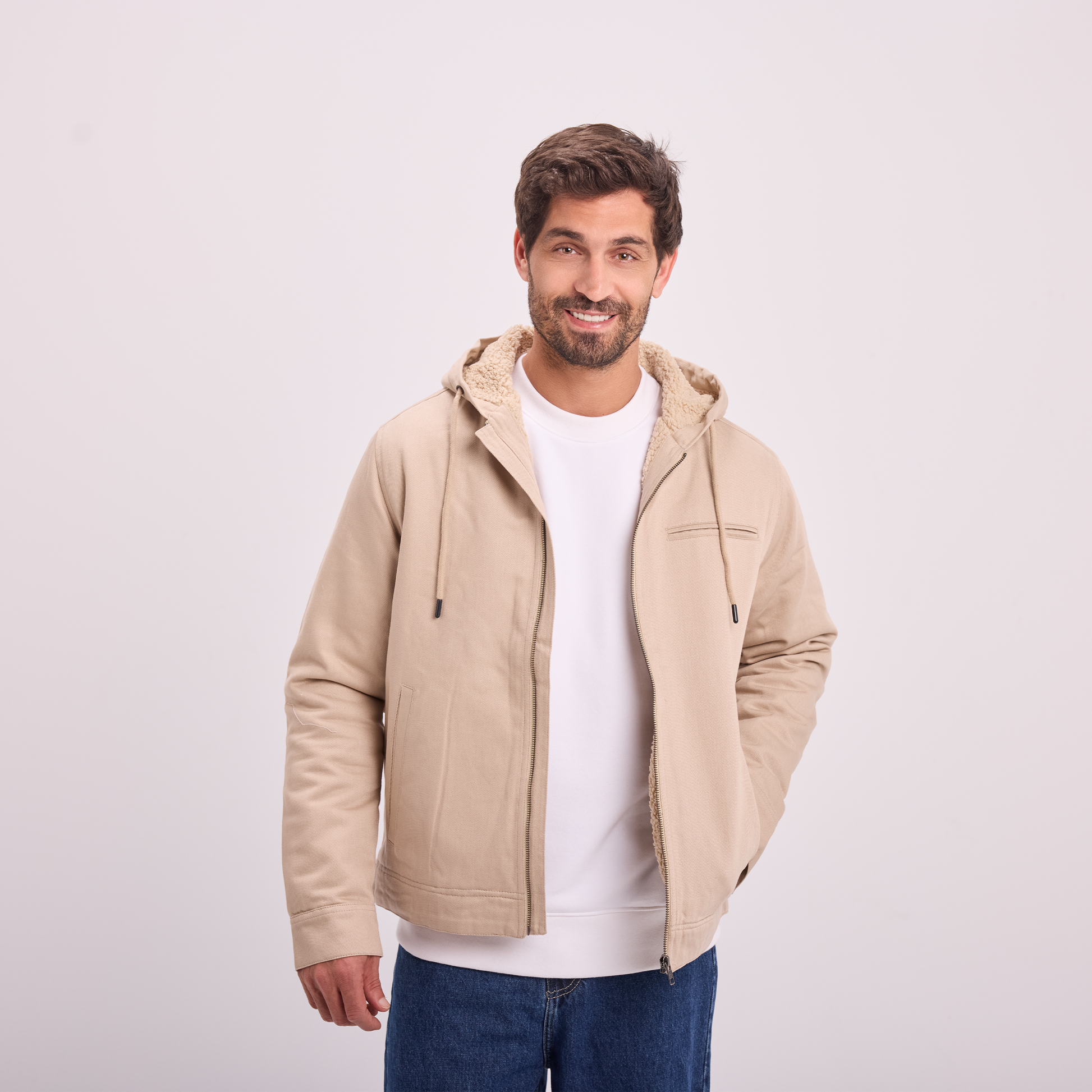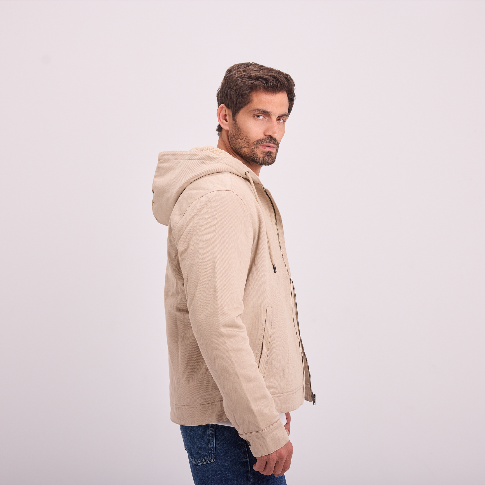 Designed for warmth without bulk, this jacket features a soft fur lining on the inside for added comfort during colder days. Made with a durable gabardine outer layer and a clean zip-front design, it offers a relaxed fit that’s easy to layer over everyday essentials. Finished with a hood and practical pockets, it’s a reliable choice for daily wear in cooler weather.