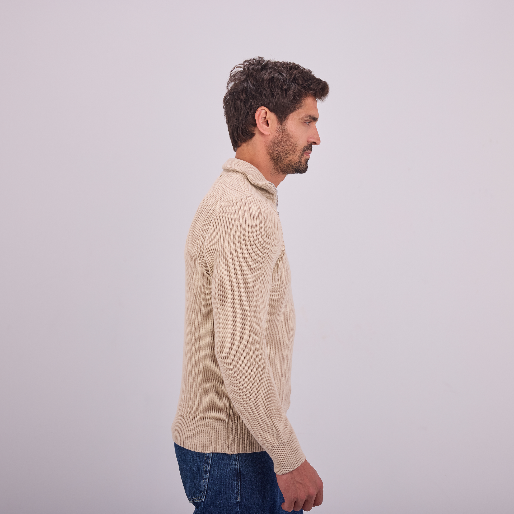 The Quarter-Zip Knit Pullover features a textured knit fabric that feels soft yet durable.